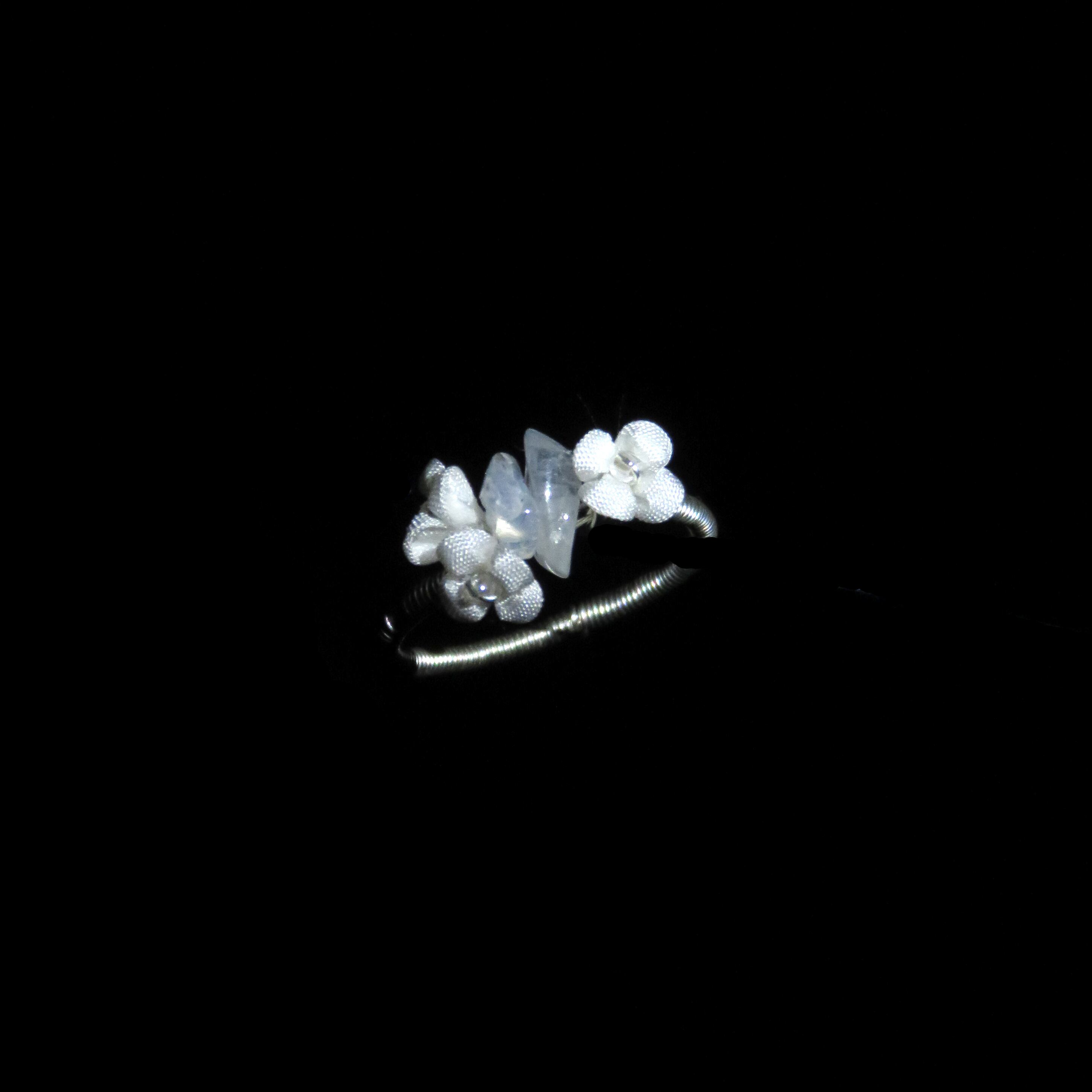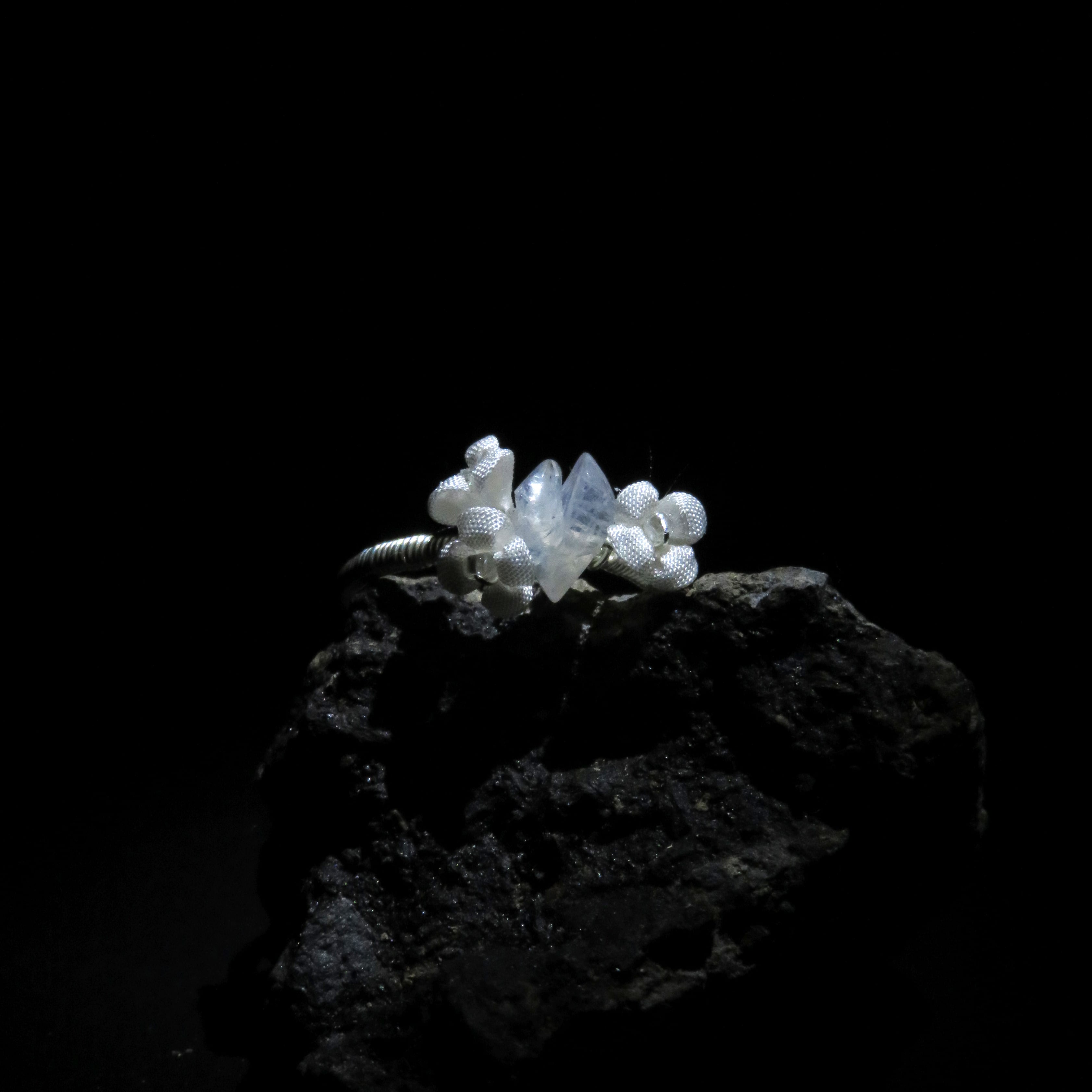 白花とハートのムーンストーンのリング/LUEUR/SV925/16.5号(サイズ変更可能)
