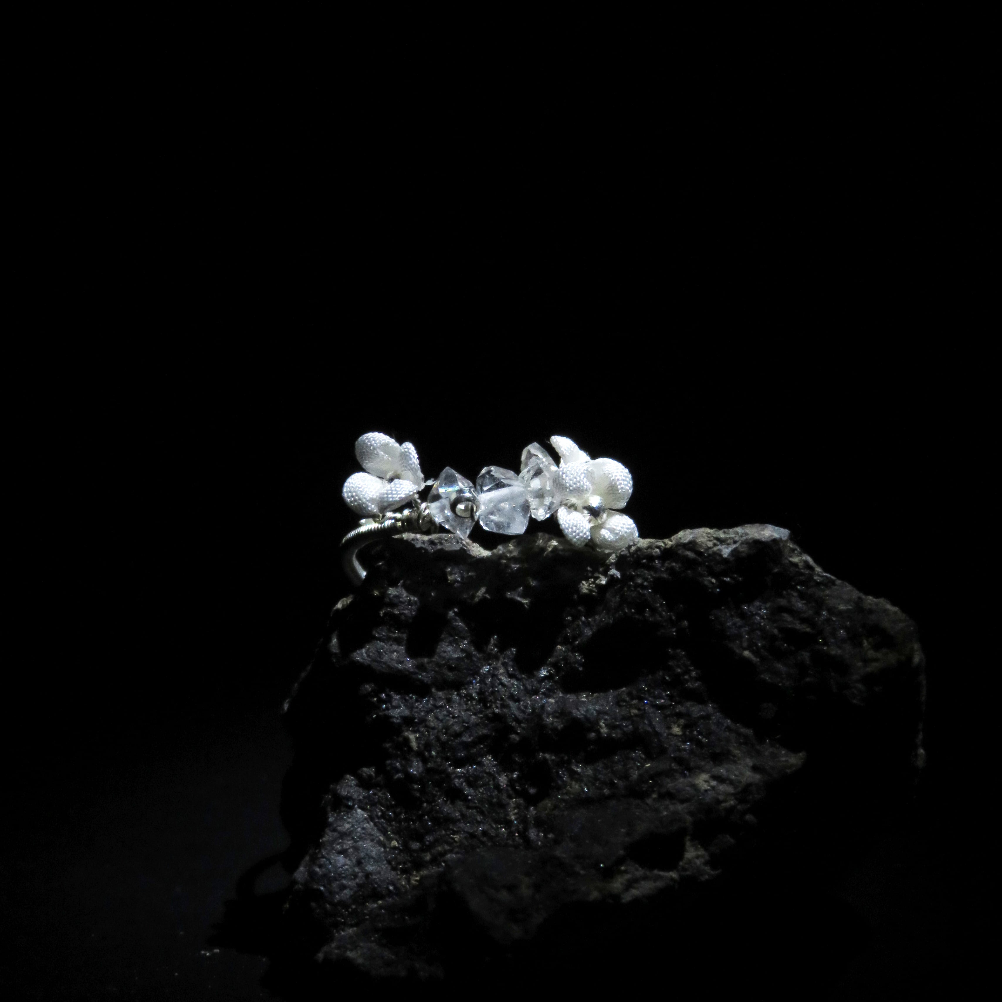 白花とハーキマーダイヤのリング/LUEUR/SV925/14号(サイズ変更可能)
