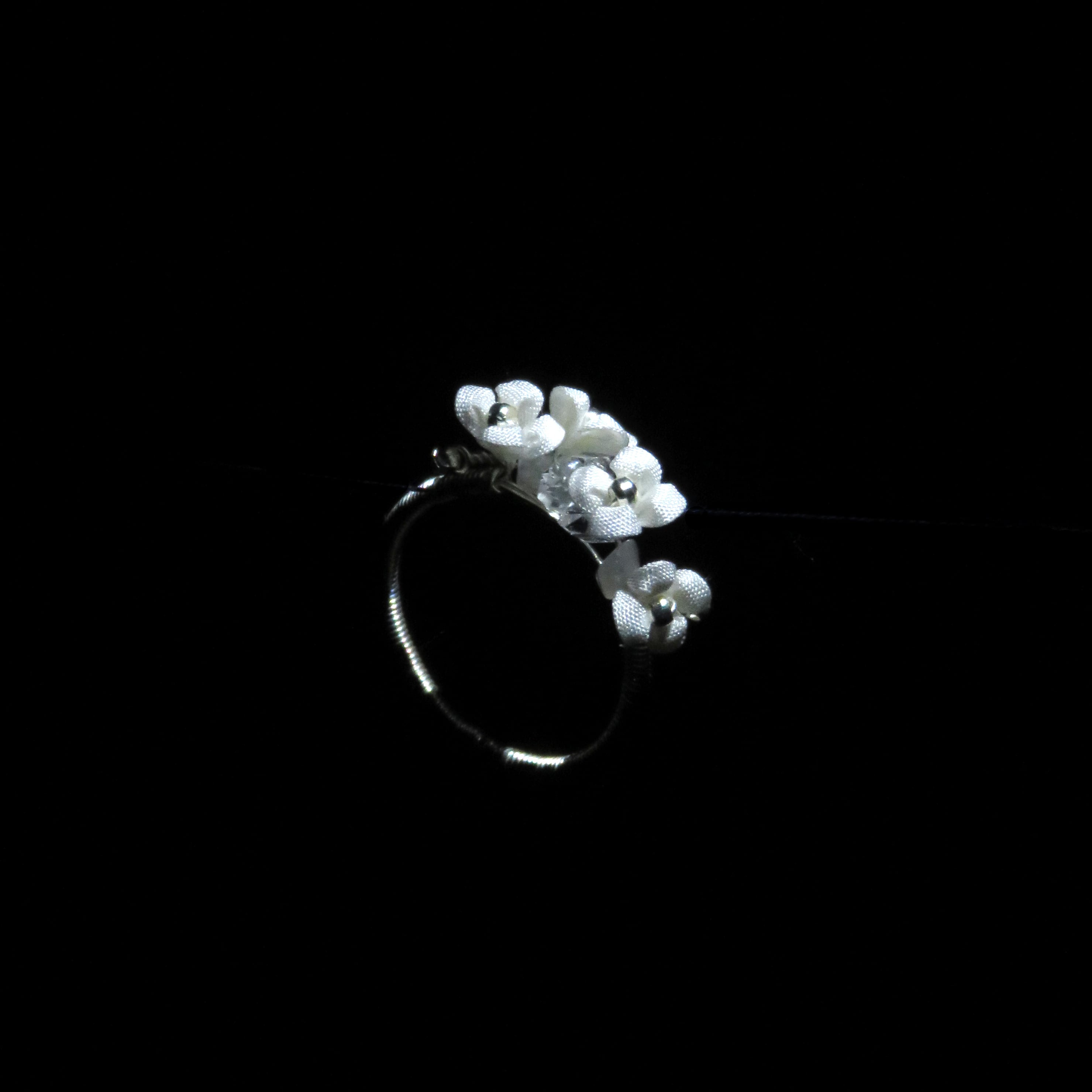 白花とガラスとムーンストーンのリング/LUEUR/SV925/13号(サイズ変更可能)