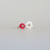 紅と白花のフォークリング つまみ細工/アレルギー対応